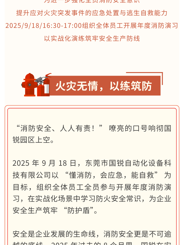 以练筑防!国锐消防演习筑牢安全生产 “防火墙”