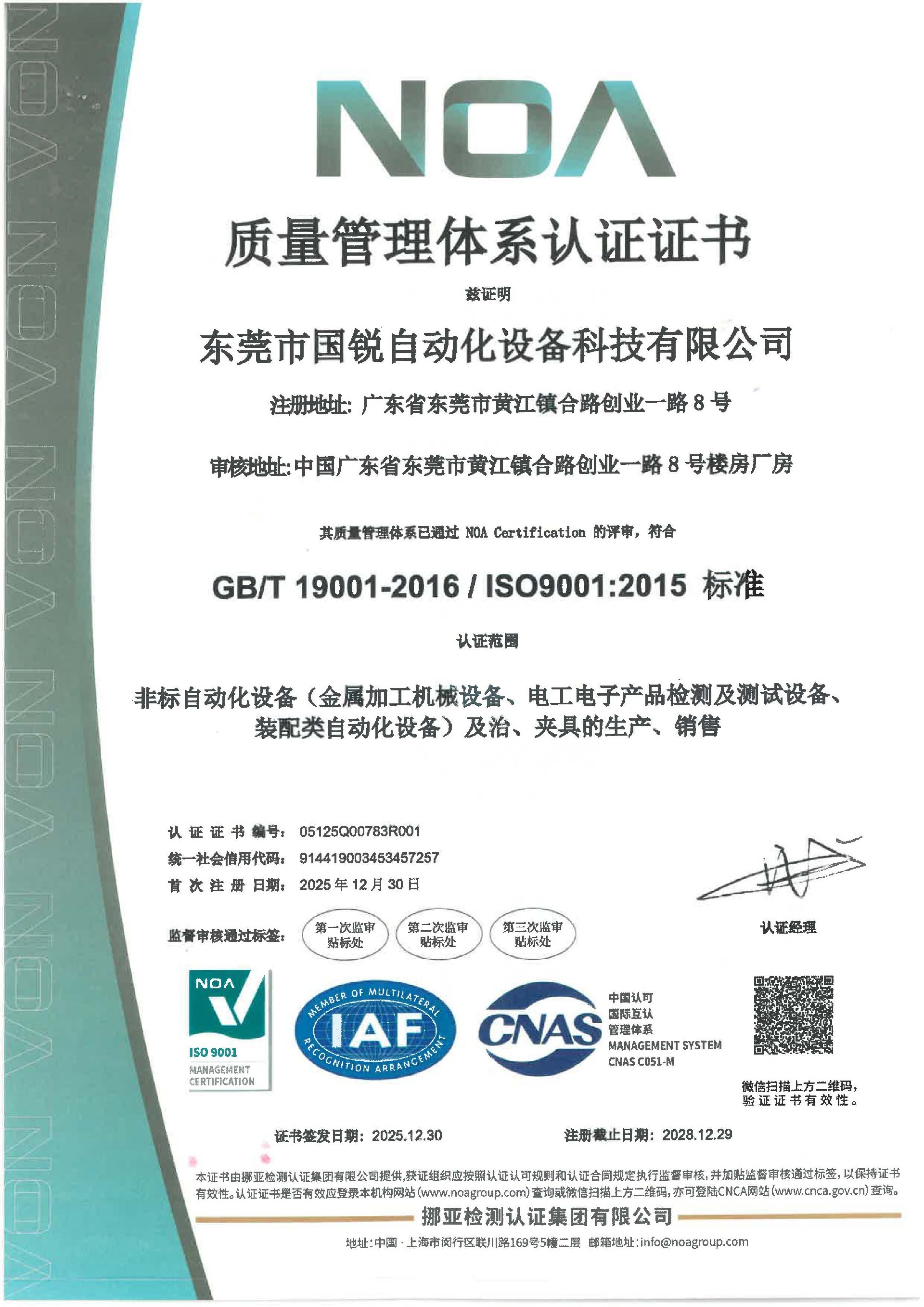 国锐自动化设备科技有限公司是一家专业从事自动化设备制造的高新技术企业,集非标自动化生产线、精益生产改造、工业协作机器人、CCD视觉影像等智能制造方面的技术开发、产品设计及生产销售为一体,广泛应用于汽车电子、半导体、电子工业、光学仪器、特种电机等制造行业,可根据客户需要订制各类加工组装专用非标自动化生产线多方面满足不同客户的需求。